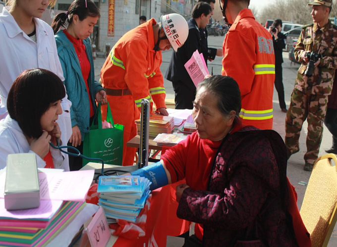 上图为工作人员为各族妇女免费测血压