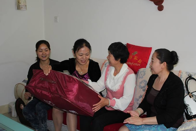 上图为县妇联新任领导班子走访老妇联主席焦春英