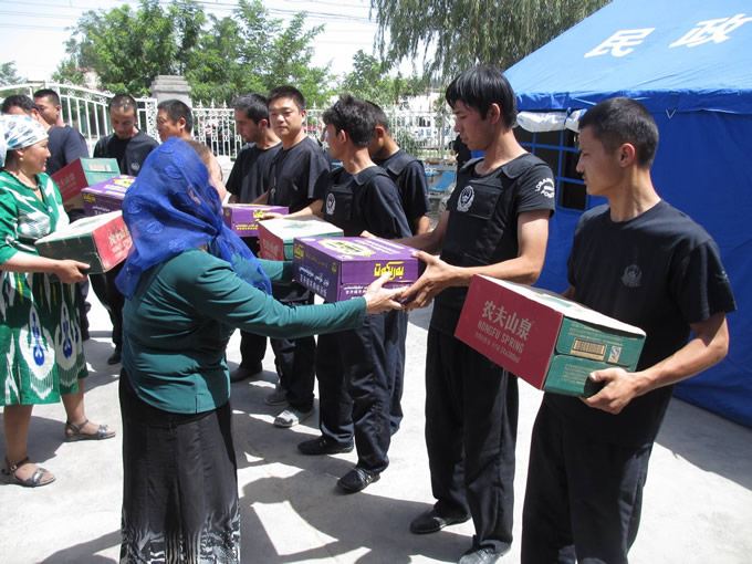 7月4日上午,县妇联组织“妈妈互助”协会的会员带着矿泉水、方便面、火腿肠等价值1000余元的物品对瓦石峡镇派出进行了慰问,“妈妈互助”协会的会员们带上自己亲手做的酸奶、烤包子、馕饼送到派出所民警手中,对他们放弃了与家人团聚的机会,日夜奋战在维稳工作第一线,用自己的辛劳换来了我县的安宁与欢乐表示感谢。派出所张所长对妇联一行表示感谢,同时保证,请大家放心,他们一定会坚守岗位,用实际行动报达党的政府对他们的信任。