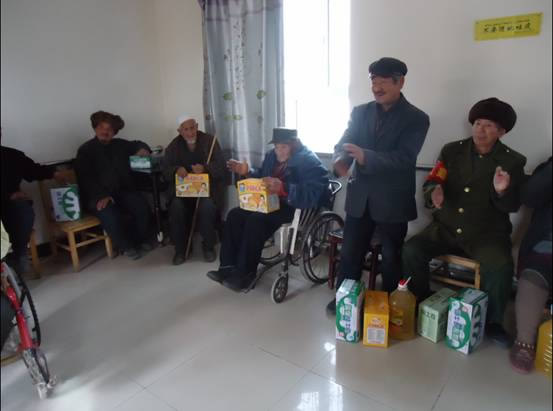 志愿者们到敬老院在与老人们一起聊天,听老人们讲他们的故事,帮老人们打扫卫生,并为老人们送去慰问品,向老人们传达了青年志愿者们对老人们的关心和慰问。同时表示今后团委将积极动员社会各界力量,积极动员并组织更多的志愿者参与到敬老爱老助老活动,努力为老人们营造一个号的生活氛围,让每一个老人都能更好的安度晚年。