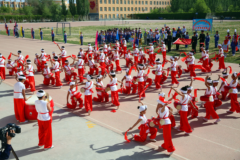 龙腾虎跃,擂响神州,由若羌县城西新区学校带来的腰鼓表演正式拉开了本届运动会序幕。