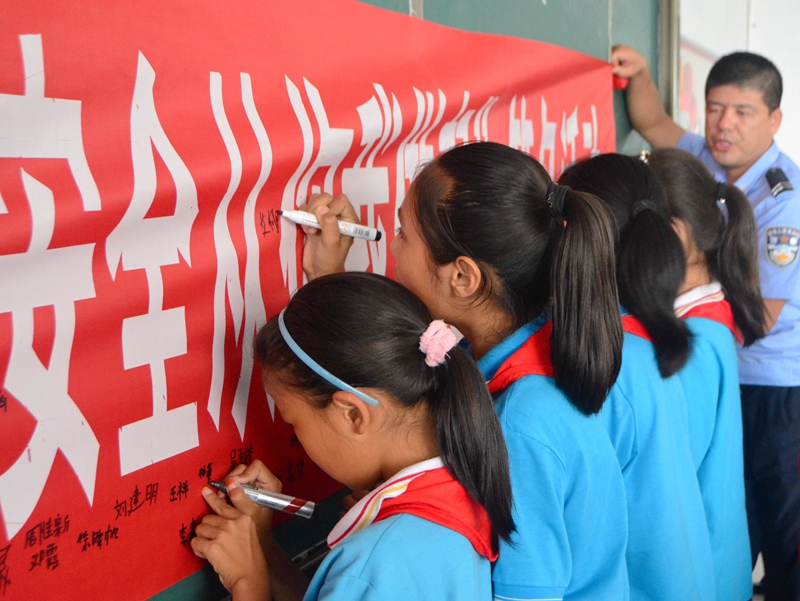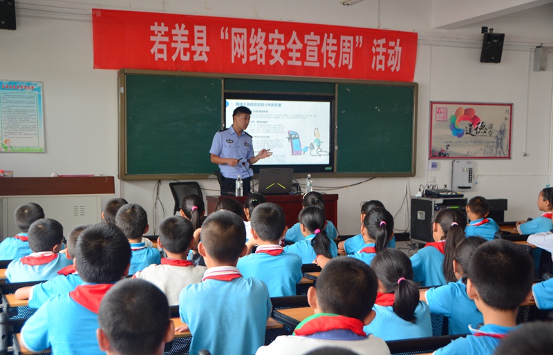 9月23日下午,若羌县公安局网安大队民警来到该县城西新区学校为200名学生上了一堂内容丰富的网络安全教育课并进行了主题签名活动。