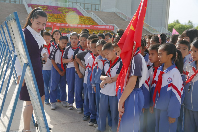 若羌县第一小学学生艾丽菲热?肉孜说:“讲解员姐姐的讲解和宣传手册里让我知道了原来我们若羌还有这么多文化古迹。”