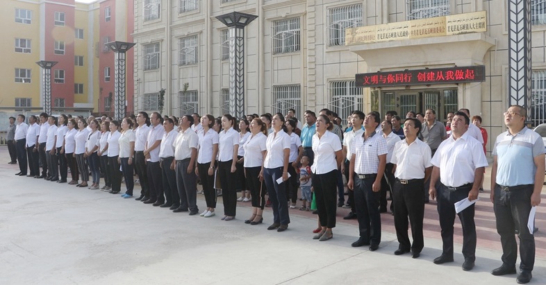 爱祖国、感恩党、听党话、跟党走,每周一的升国旗、宣讲活动在瓦石峡已成为常态。8月14日上午9点整,瓦石峡镇全体干部、群众商户齐聚在镇政府大院内,参加庄严的升国旗仪式并齐唱国歌。