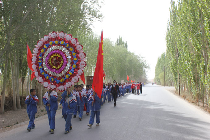 图为师生清明祭扫路上