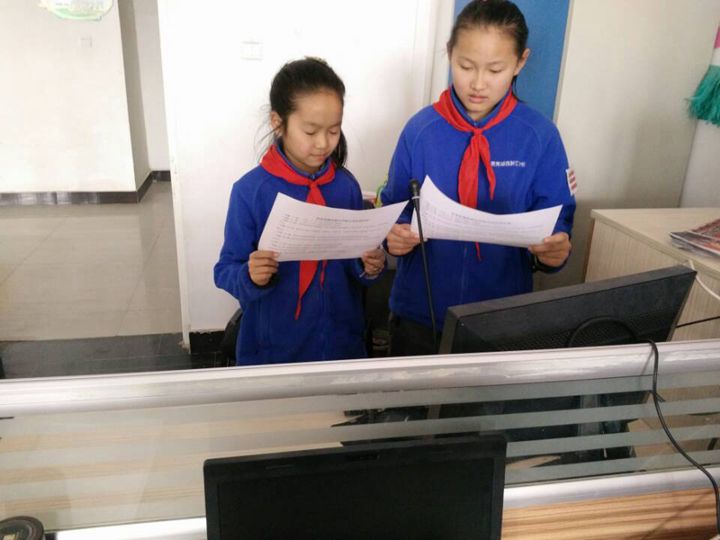上图为小小广播员正在播报