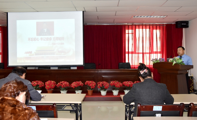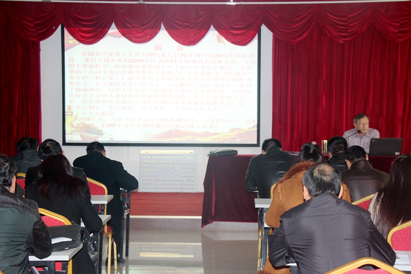 11月17日下午,县市场监督管理局召开了学习宣传贯彻党的十九大精神专题党课,局党组副书记、局长张根涛给全局党员干部上了一堂以“不忘初心、牢记使命、方得始终,准确把握内涵实质,迅速掀起学习宣传贯彻党的十九大精神热潮”的专题党课。